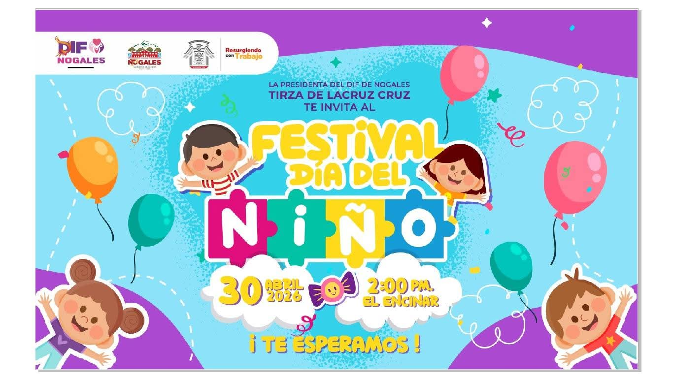 Nogales.- Con el objetivo de llevar alegría, convivencia y momentos inolvidables a la niñez nogalense, el Sistema para el Desarrollo Integral de la Familia, anunció la realización del festival del Día del Niño, el cual se desarrollará del 28 al 30 de abril en distintas sedes del municipio.