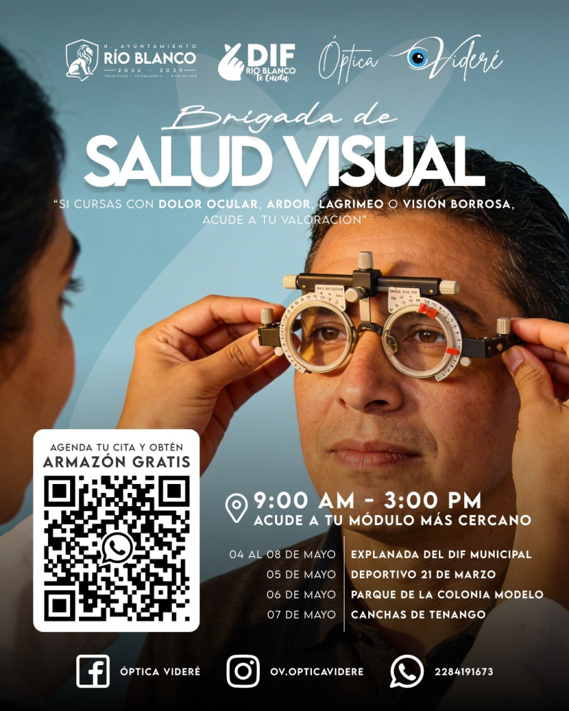 Con el compromiso de fortalecer el bienestar de las familias, el Sistema DIF Municipal de Río Blanco, encabezado por la presidenta Gabriela Rodríguez Álvarez, invita a la población a participar en la Brigada de Salud Visual, una iniciativa que busca detectar y atender problemas de la vista de manera oportuna.